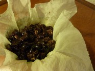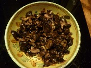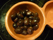 300 gr. Oliven (in Salzlösung eingelegte), zwei Knoblauch-Zehen,